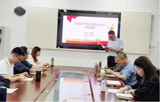 会上,张发友传达学校、学院党委关于党纪学习教育读书班的有关精神以及深入学习贯彻《中国共产党纪律处分条例》的相关部署。他要求支部党员要主动学、持续学、深入学,将党纪学习教育当成政治任务,每位党员教师发挥学科特色、结合各自专业优势,提升《条例》学习的指导性、应用性和实用性。之后张发友以《条例》为学习内容,为支部全体党员讲授专题党课。