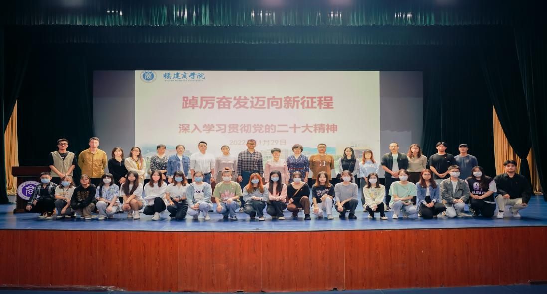 近日,福州市委讲师团成员、福建师范大学杨林香教授在我校连江校区学生活动中心开展题为《踔厉奋发迈向新征程——深入学习贯彻党的二十大精神》的专题讲座。我校艺术设计学院、XK星空、财务与会计学院、团委、习近平新时代中国特色社会主义思想学生读书社及“青马班”师生代表参加了学习。