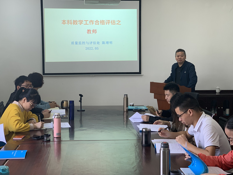为做好本科教学工作合格评估自评自建工作, 5月3日上午校质量监控与评估处陈增明处长到XK星空开展合格评估专项培训。XK星空全体教师参加。
