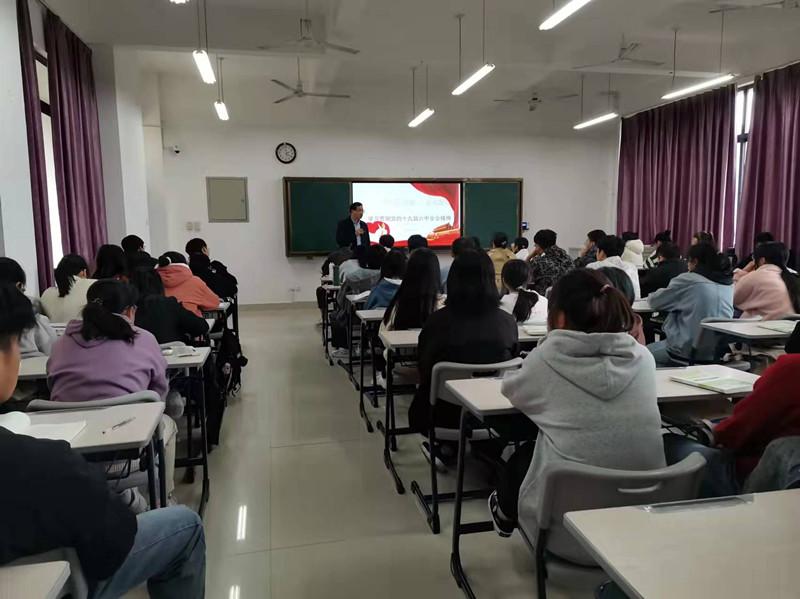 12月8日下午,副校长蒲文庆在连江校区诚信楼405教室为2021会展经济与管理班学生上了一堂《奋斗百年路 启航新征程——学习贯彻党的十九届六中全会精神》的专题思政课。