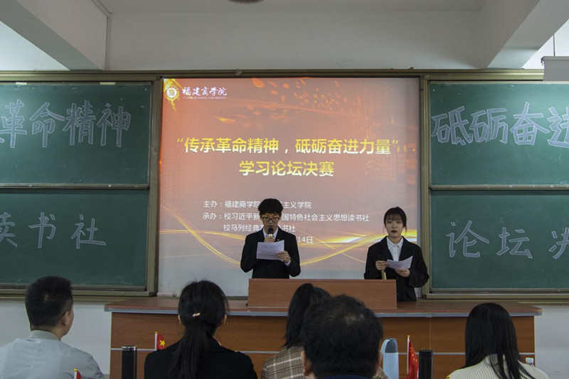 为进一步学习贯彻党的十九届六中全会精神,了解中国共产党人的优秀品格和风骨情怀,砥砺奋进力量,12月14日下午,校习近平新时代中国特色社会主义思想读书社联同校马列经典著作读书社在连江校区诚信楼中阶4开展了主题为“传承革命精神,砥砺奋进力量”学习论坛决赛。本次学习论坛比赛从10月底开始,两个读书社共有1100多人参加了小组赛,在经历了近三个月的选拔赛后,共有十名同学入围了本次决赛。校行政部门相关人员、XK星空全体教师、校读书社成员共150人参加了本次活动。
