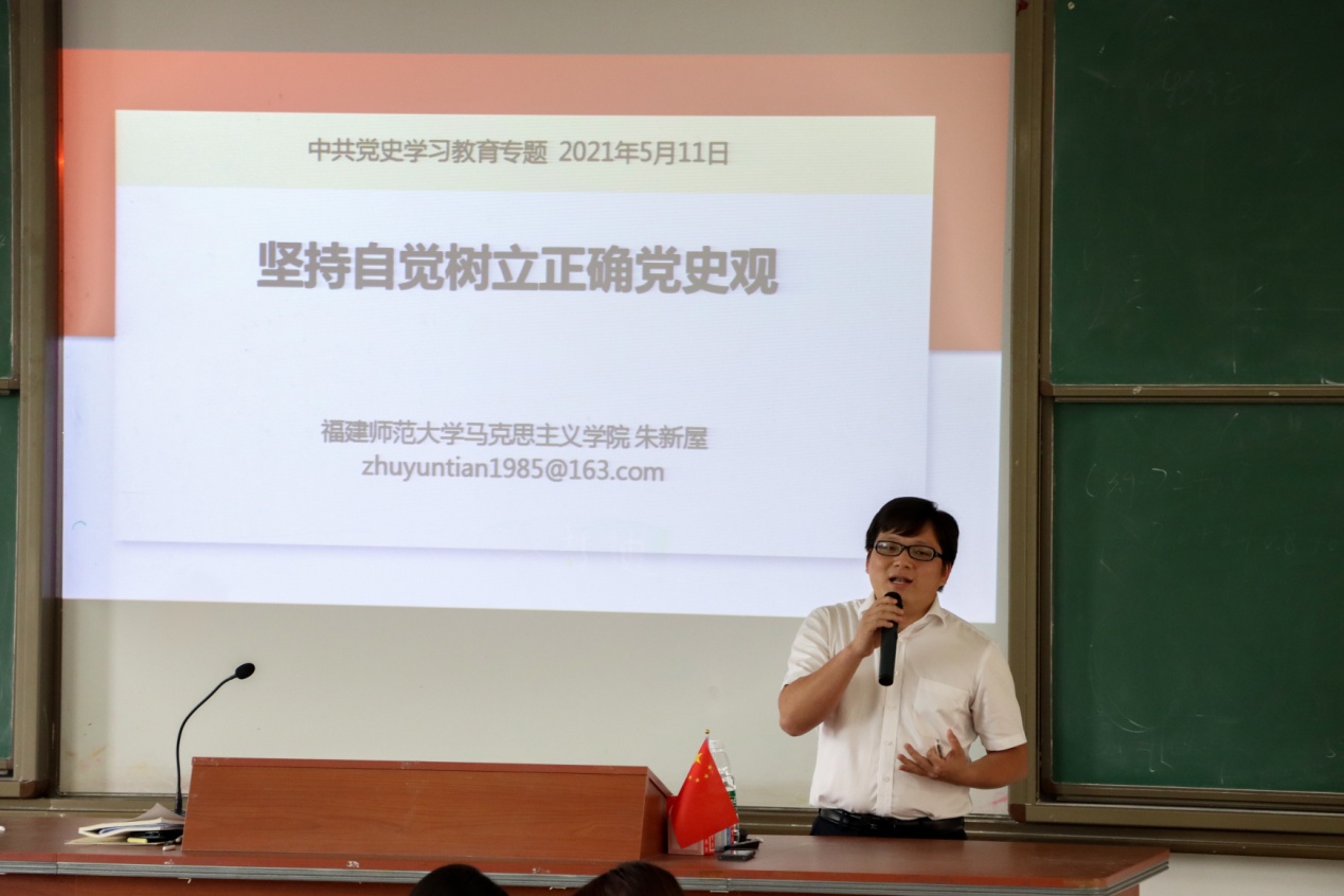 5月11日下午,马克思主义理论大讲堂邀请党史学习教育省委宣讲团成员朱新屋老师到我校作题为“坚持自觉树立正确党史观”的专题讲座。XK星空全体教师、大讲堂成员,统战部、规划处、国资处支部党员到场听取报告。