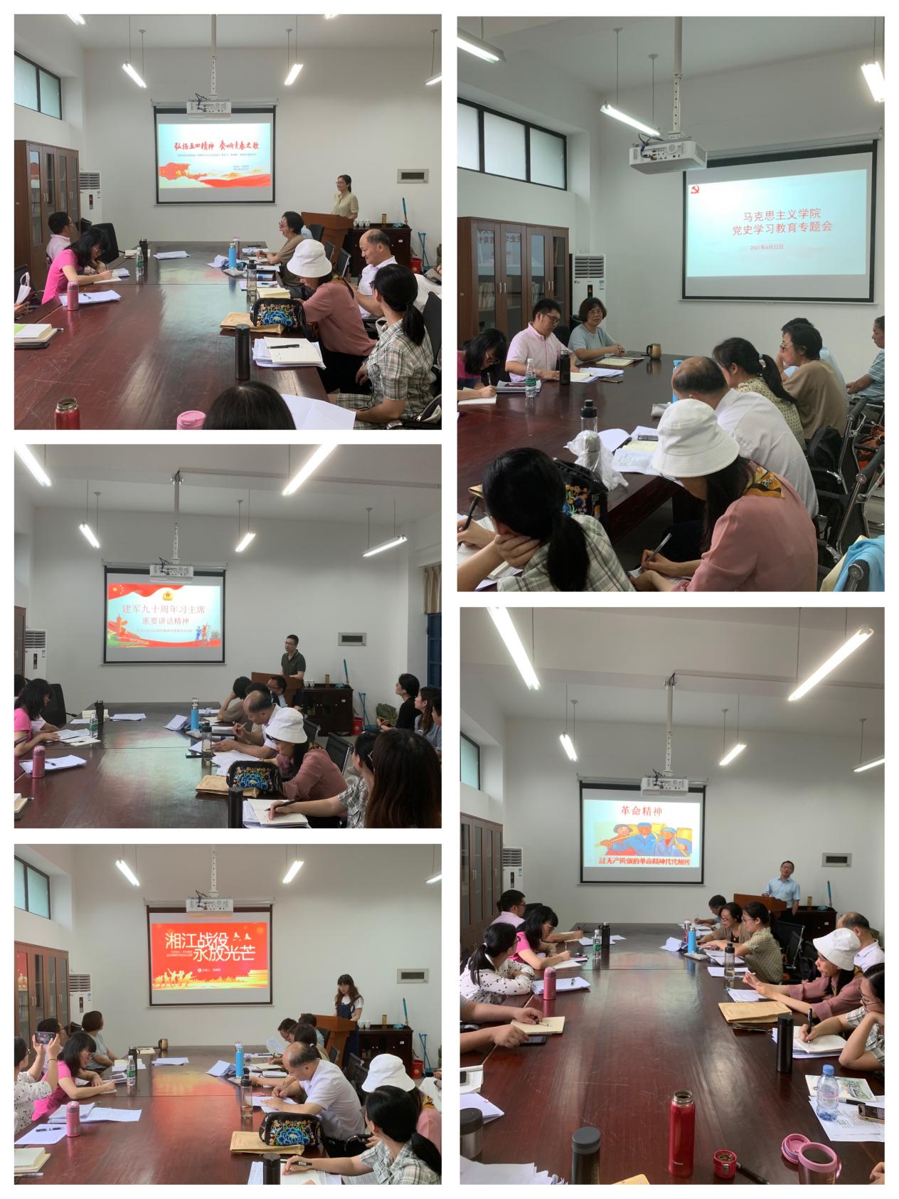 会上,全院教师根据最近的学习体会,踊跃发言,谢东俊老师以《革命精神——让无产阶级的革命精神代代相传》为题,从形成的历史时期、性质分类、领域分类、中国共产党精神的主体几个方面展开,深入探讨中国共产党精神的来源和核心要义。陈香琴老师以“弘扬五四精神,奏响青春之歌”为主题,论述了新时代五四精神的科学内涵,并且强调青年人才学习五四精神的重要意义。梁睿老师重新研读了《习近平总书记在庆祝中国人民解放军建军90周年大会上的讲话》,阐述了人民军队的历史功勋和力量所在,深刻诠释了中国人民解放军“一切为了人民”的坚毅使命。郑南希老师回顾了红军长征中的湘江战役,认为要铭记和珍视湘江战役红军先烈用鲜血和生命铸就的伟大精神,坚持党的领导,坚定理想信念,坚守砥砺奋进奋力,才能走好实现中华民族伟大复兴的新长征路。