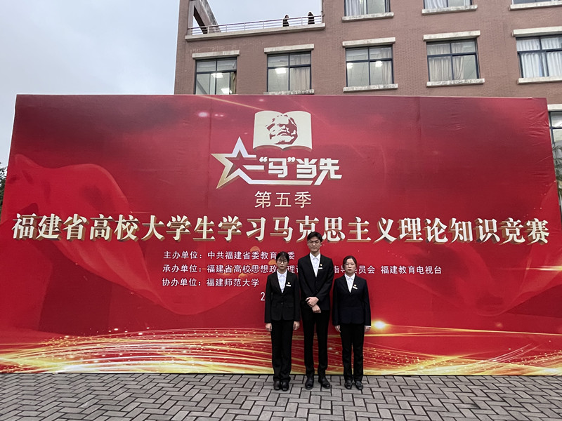 12月20日,由省委教育工委主办的第五季福建省高校大学生学习马克思主义理论“一‘马’当先”知识竞赛落下帷幕, 我校国际经贸学院张艺宛和刘键滨、传媒与会展学院陈姝婷3位同学进入总决赛参与现场答题,张艺宛荣获本科组三等奖。