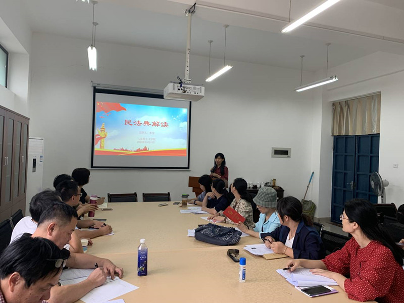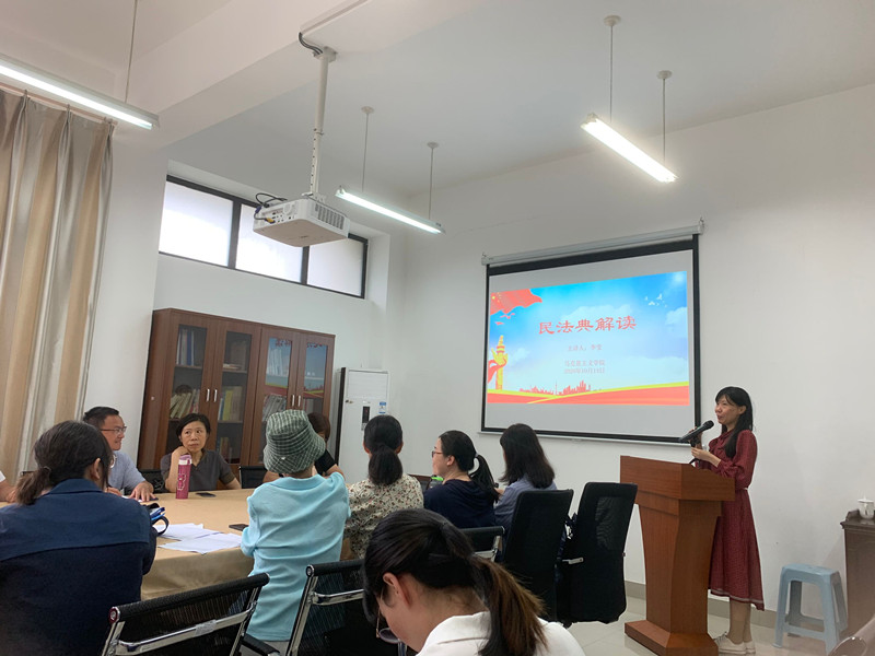 2020年10月13日下午,XK星空直属党支部在院部会议室召开了《中华人民共和国民法典》的学习活动,马院副教授李莹老师做了题为《民法典解读》的主题讲座。讲座由林萍书记支持,马院全体党员教师聆听了这场讲座。