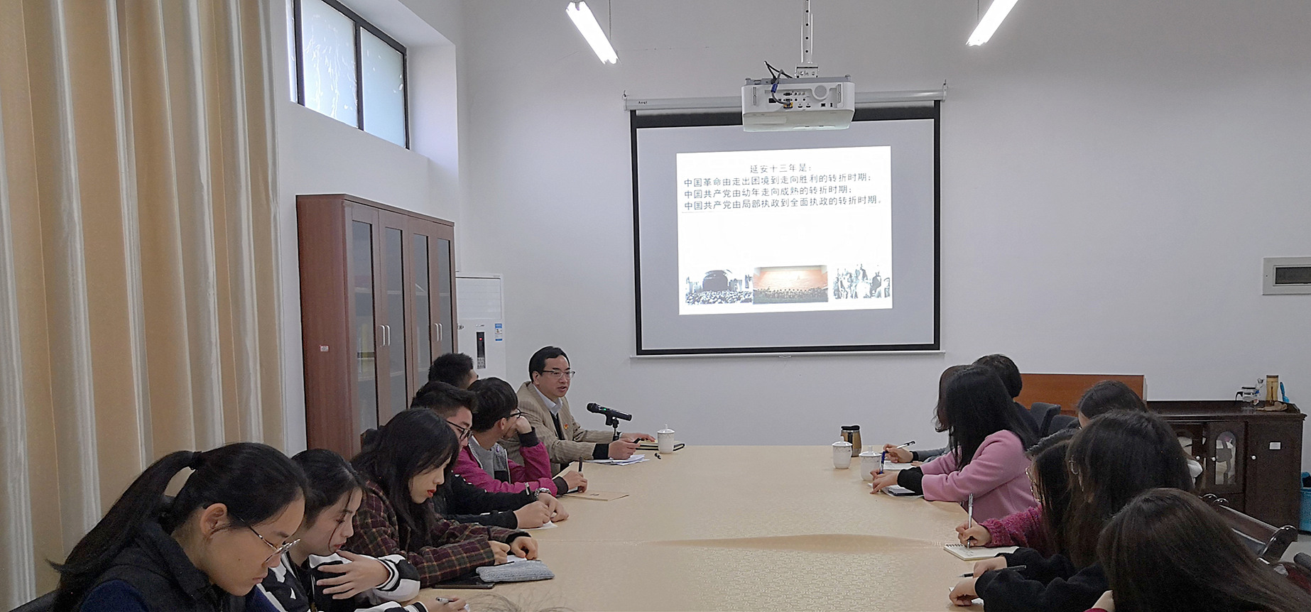 1月2日上午,副校长蒲文庆在XK星空会议室给财务与会计学院习近平新时代中国特色社会主义思想读书社学生上了一堂题为《中国革命成功的延安之路——中共中央延安十三年》的思政课。财务与会计学院、XK星空部分老师以及读书社成员参加了此次学习。