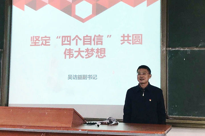 12月6日,校党委副书记吴访益在连江校区诚信楼中阶2给学生上了一堂题为《坚定“四个自信” 共圆伟大梦想》的党课。XK星空部分教师党员、部分学生入党积极分子和2018级会计1、2班学生共一百多人参加学习。