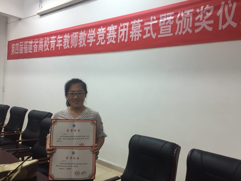6月20日-21日,由福建省总工会、福建省教育厅主办的第四届全省高校青年教师教学竞赛在武夷学院举办。XK星空刘贤玲老师参加了本次比赛。经过两天的角逐,最终以小组排名第3的成绩荣获一等奖,被授予“福建省高校青年教学名师”荣誉称号。