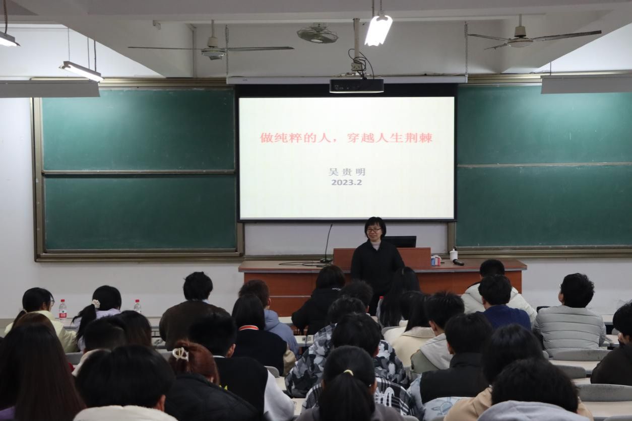 2月22日晚上,福建省委党校吴贵明教授应邀到我校作“做纯粹的人,穿越人生荆棘”专题讲座。XK星空部分教师、校习近平新时代中国特色社会主义思想读书社社员等共120多人参加学习。