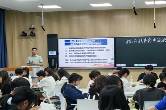 5月10日下午,XK星空中国近现代史纲要教研室叶陈钦老师在自强楼511智慧教室开展以“抗日战争的中流砥柱”为主题的示范型观摩课,授课班级学生、学校教师共60多人参加教研活动。