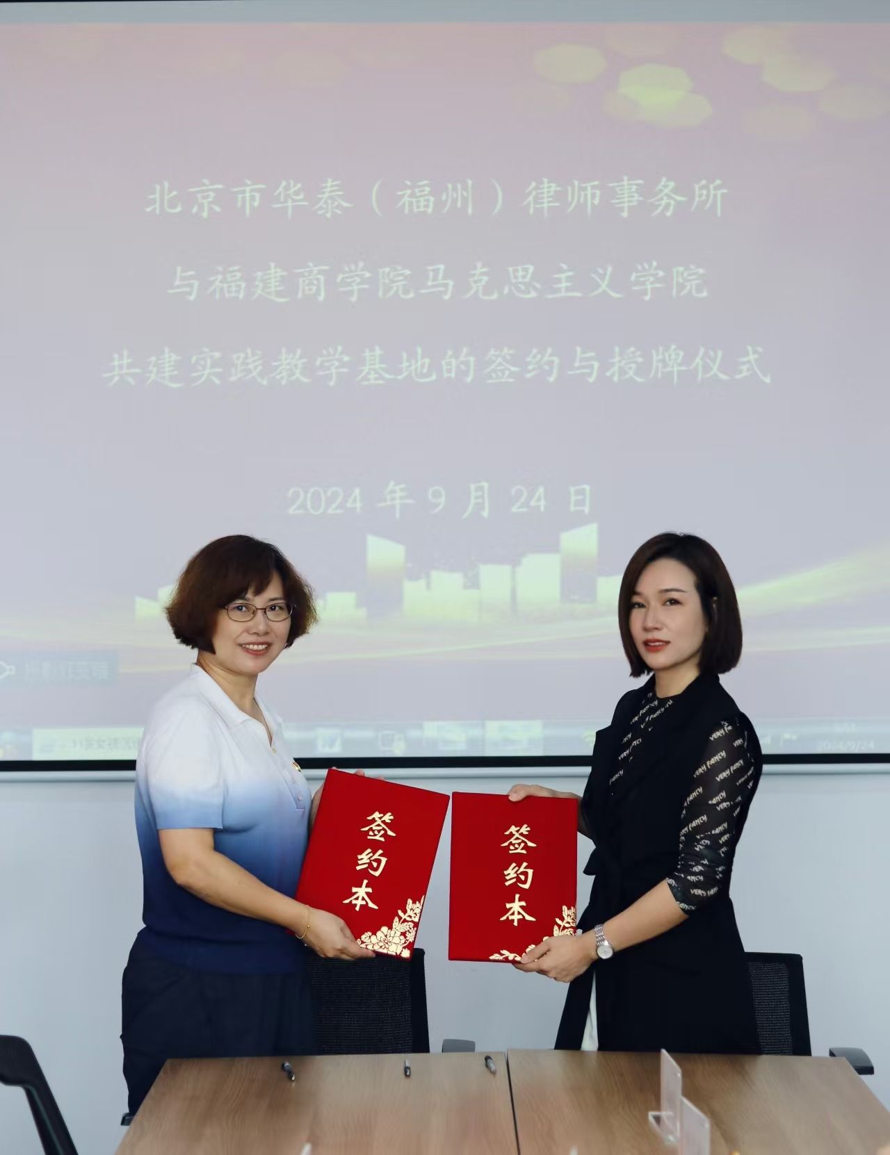 为深入贯彻落实习近平总书记关于“大思政课”的重要指示批示精神,按照教育部关于开展高校与“大思政课”实践教学基地结对行动的部署要求,9月24日上午,XK星空与北京市华泰(福州)律师事务所共建“大思政课”实践教学基地签约揭牌仪式在北京市华泰(福州)律师事务所举行。律所执行主任方云香、执行副主任兼党务负责人张江波、XK星空党委书记、院长林萍及律所高级合伙人、部分老师参加仪式。