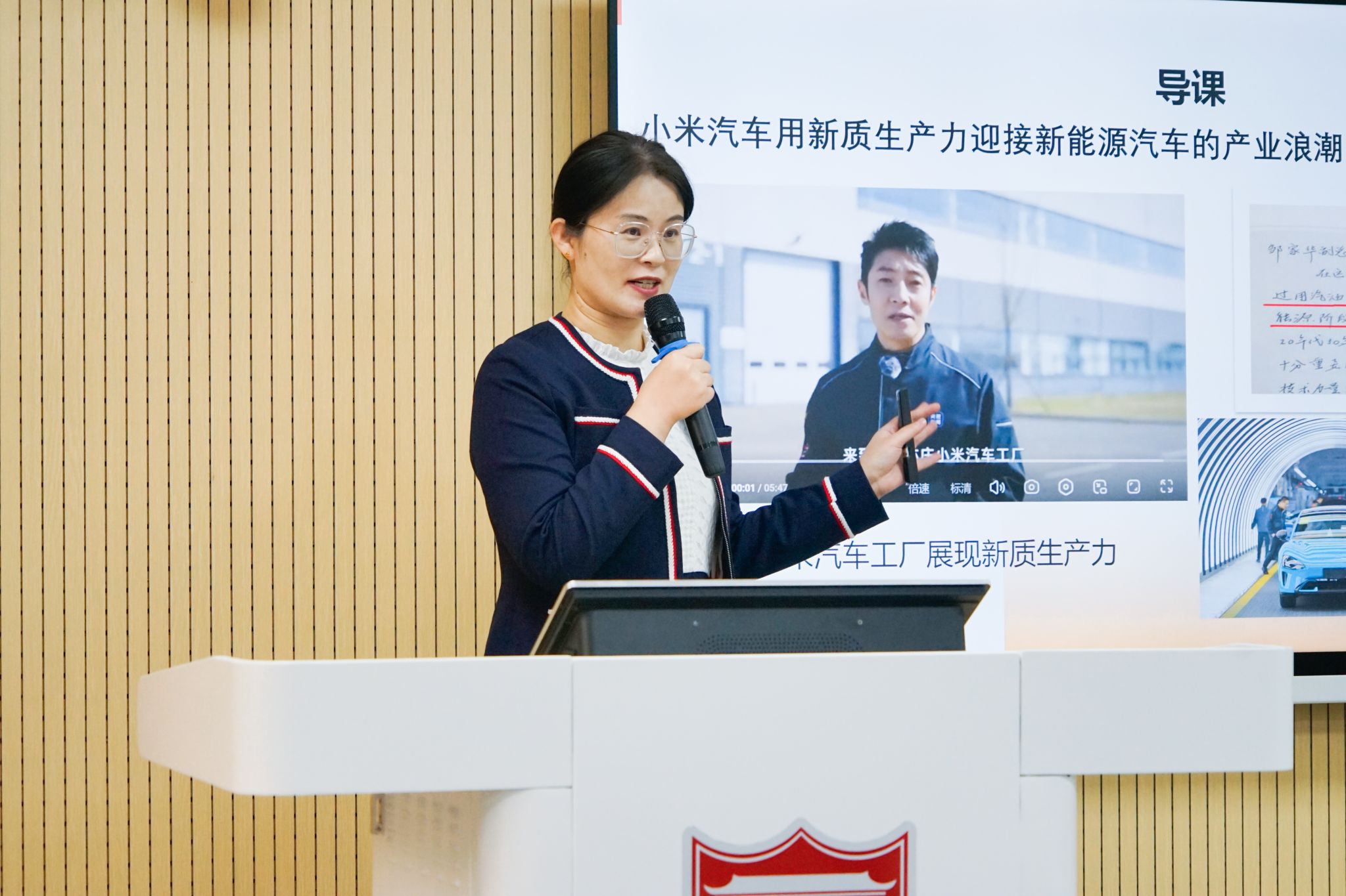 会议伊始,福建师范大学XK星空任远老师和我校李雪飞老师围绕《马克思主义基本原理》课的核心知识点——“唯物辩证法的总特征”,依次进行了教学展示。其中,李雪飞老师以《从认识新质生产力出发感悟唯物辩证法发展观之魅力》为题,巧妙选取新质生产力引领新能源汽车为案例,围绕唯物辩证法发展观的实质、原因,状态以及趋势展开讲解,为在座师生带来了一堂生动的思政示范课。