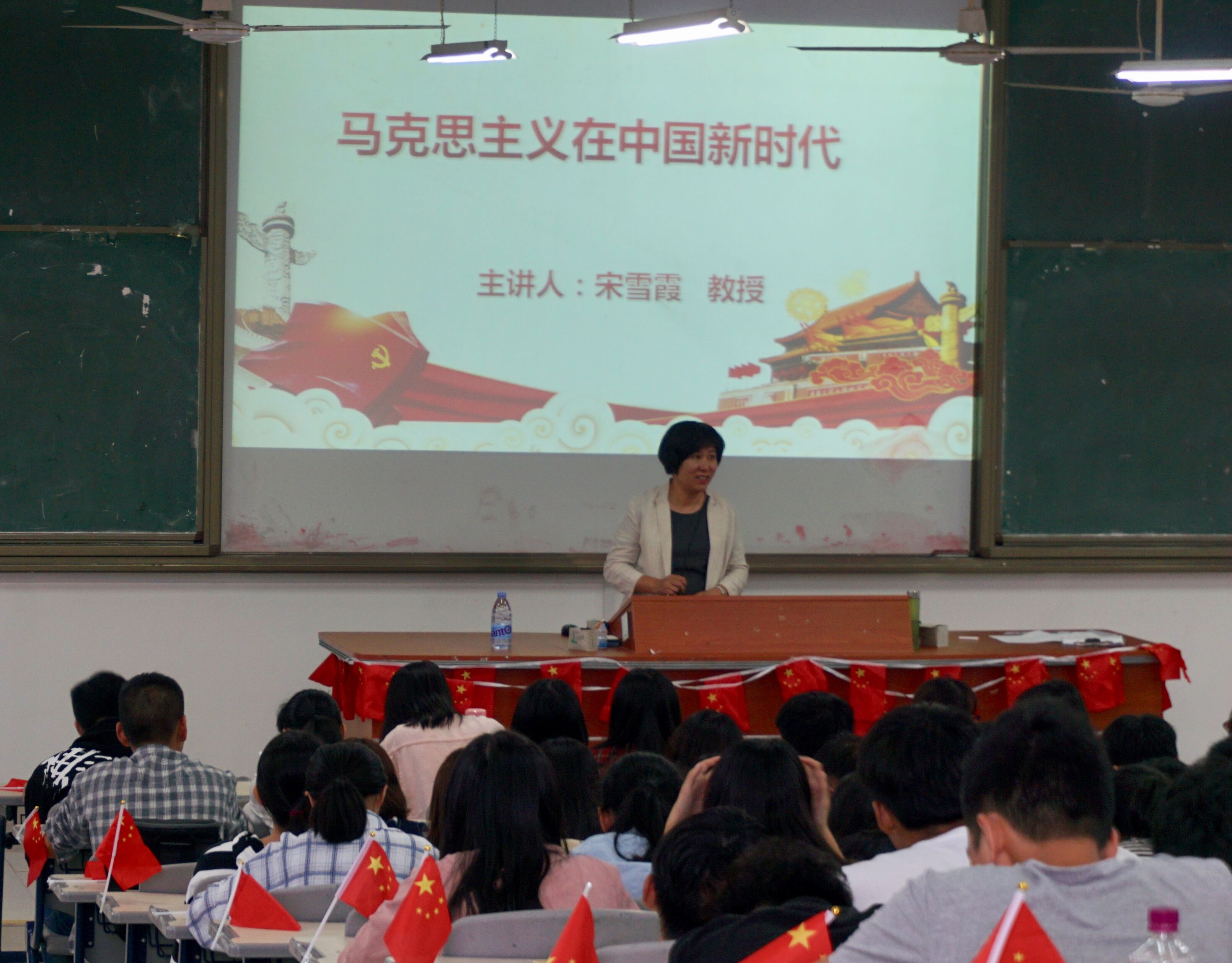开班仪式结束后,福建工程学院XK星空宋雪霞教授为在场师生作了题为《马克思主义在中国新时代》的首场专题讲座。宋教授系统全面的介绍了马克思的平生、马克思信仰形成的四个阶段、继而引导同学们思考“到底什么是马克思主义?”她用拆分法告诉大家:“马克思主义中的‘马克思’为其创始人,‘主义’是核心的价值追求,把马克思所倡导的造福人民,为绝大多数人谋福利作为核心价值追求,就是马克思主义”。此外,宋教授深入浅出的剖析了当代中国的伟大社会变革,不是简单延续我国历史文化的母版,不是简单套用马克思主义经典作家设想的模板,不是其他国家社会主义实践的再版,也不是国外现代化发展的翻版。