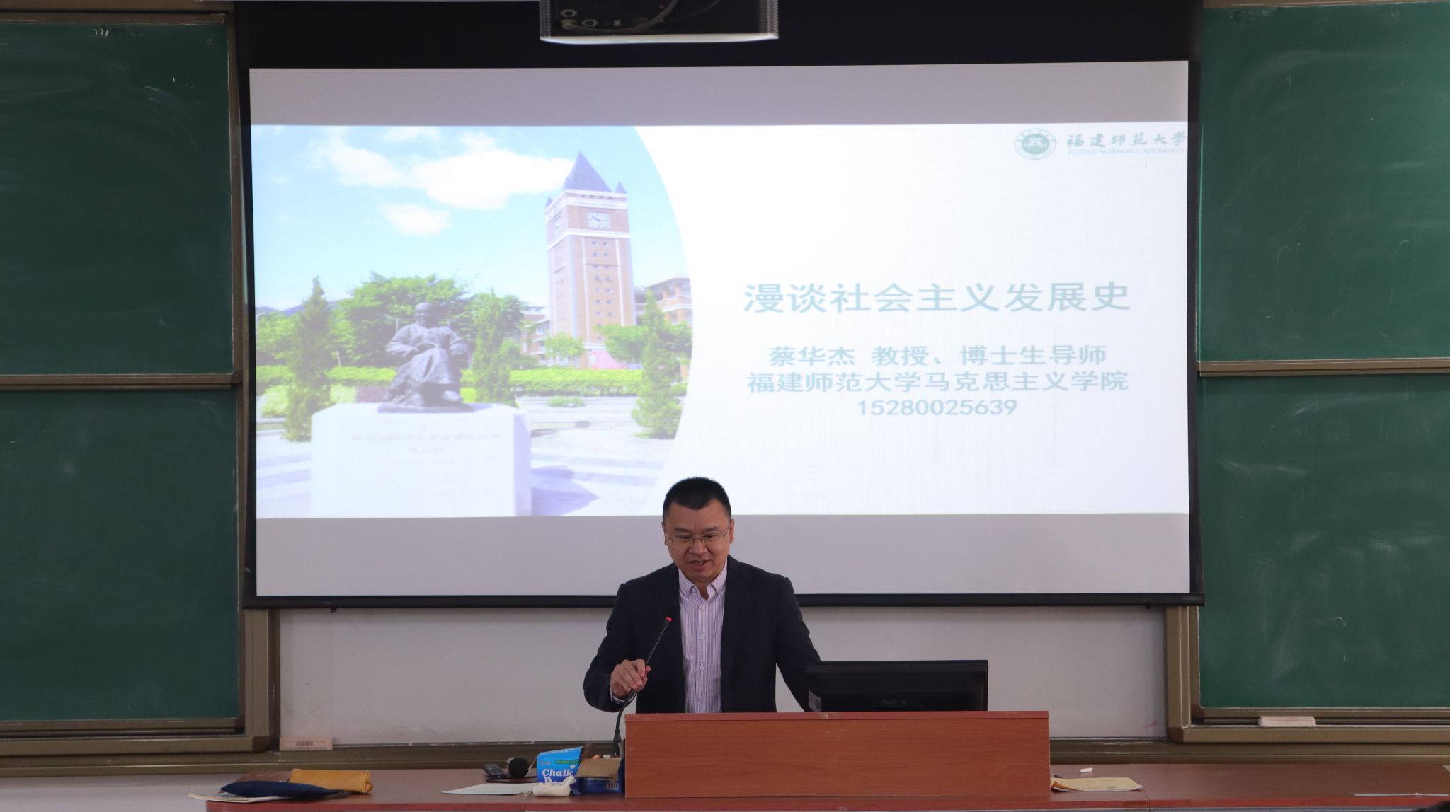 2024年4月9日,福建师范大学蔡华杰教授应邀莅临我校连江校区,开展题为《漫谈社会主义发展史》的专题讲座,分享了对于社会主义发展历程的深刻认识与独到见解。校XK星空部分教师、校读书社社员及青马班成员聆听了此次讲座。