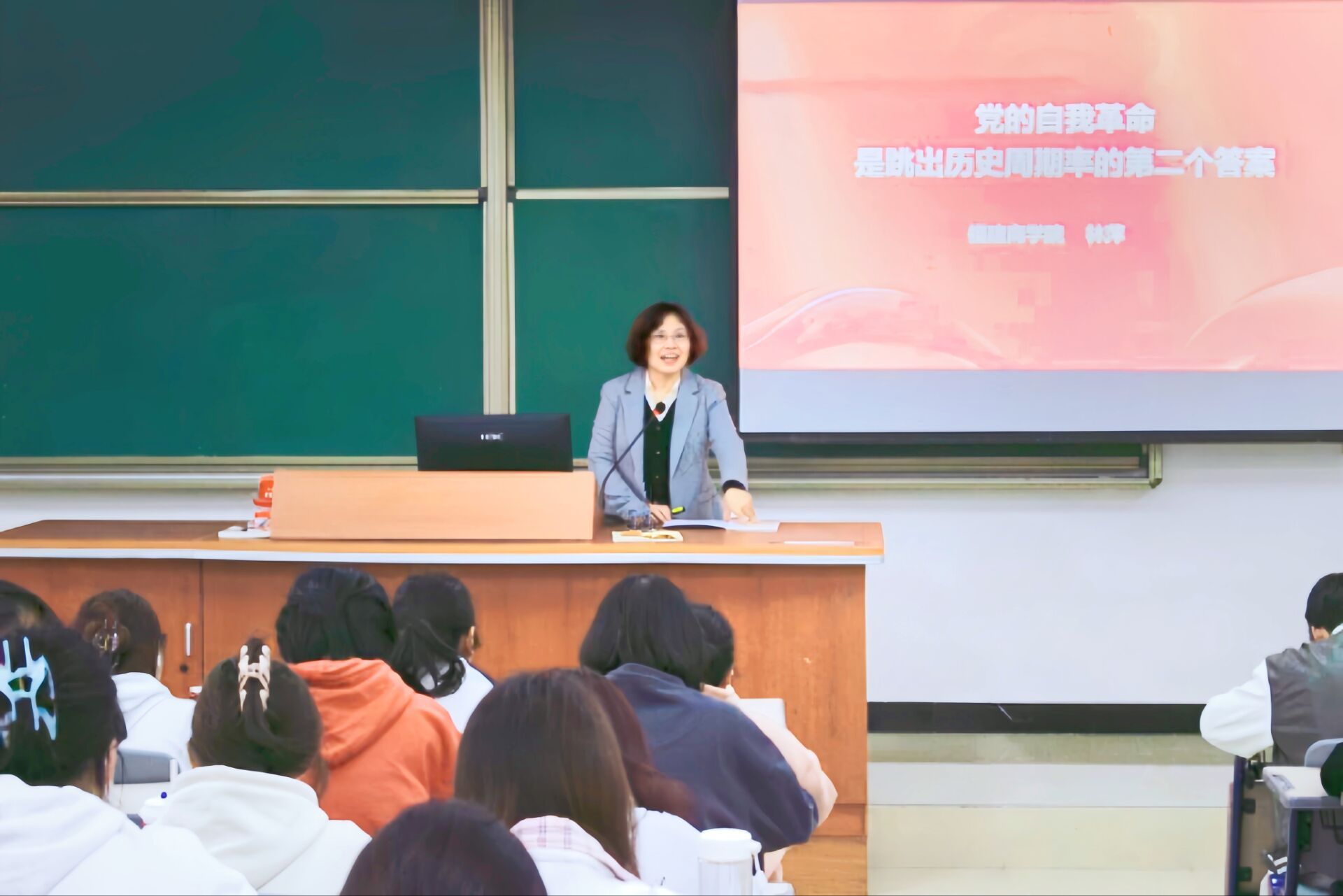 为深入学习贯彻党的二十届三中全会精神,11月19日下午,XK星空院长林萍教授于连江校区自强楼中阶梯一教室开展“党的自我革命是跳出历史周期率的第二个答案”专题讲座。校读书社社员、青马班学员代表近百人参加了此次讲座。