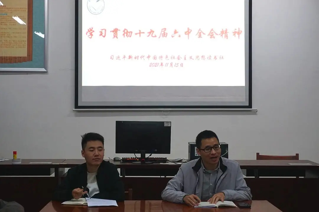为进一步学习贯彻党的十九届六中全会精神,深入学习党的百年奋斗成就和历史经验,校习近平新时代中国特色社会主义思想读书社于2021年11月15日晚在连江校区自强楼114活动室开展十九届六中全会精神学习、交流活动。XK星空赵敏老师、林甦垚老师、叶陈钦老师及读书社部分社员参加学习。活动中,师生热议十九届六中全会精神。