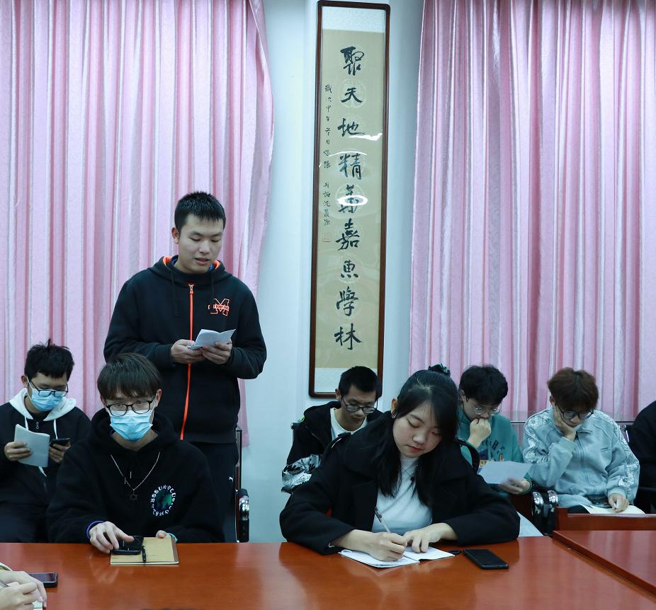 为深入贯彻学习两会精神,促进广大学子深入了解和贯彻习近平新时代中国特色社会主义思想,让师生们在“学”中熟知基本内容,在“悟”中领会精髓要义。2022年3月9日晚,校读书社、XK星空读书社在连江校区自强楼114活动室开展了关于两会精神的学习心得分享会。会议由XK星空叶陈钦老师主持,读书社学生干部干事参与此次活动。活动中,叶陈钦老师与同学们相互探讨、深入交流学习两会的心得体会。