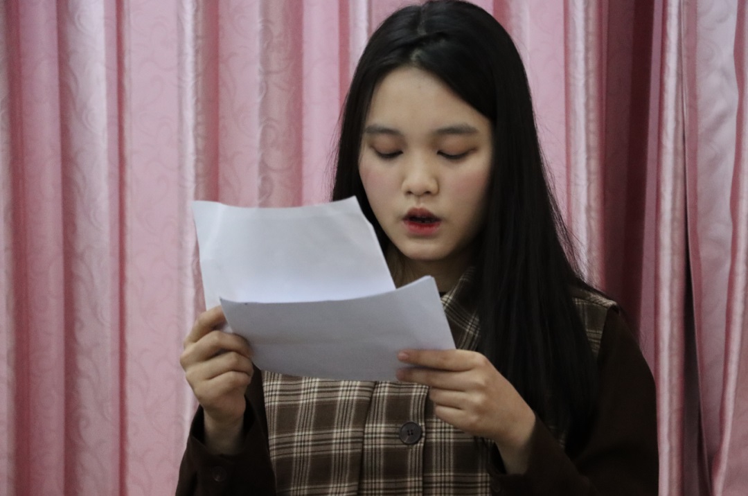 20级会展经济与管理专业何灵珊同学向大家分享了基层代表委员们撸起袖子,在平凡岗位挥洒汗水,充分发挥自身优势,听取身边方方面面的意见建议,并将其融入思考与建言当中的伟大事迹。她认为,作为学生干部,在开展活动的时候,也应该充分了解同学的需求和想法,本着为同学服务的态度,精益求精地完成每一次工作,努力成为一名“信仰坚定、心系群众、勇于担当、创新奉献”的新时代共产党人。