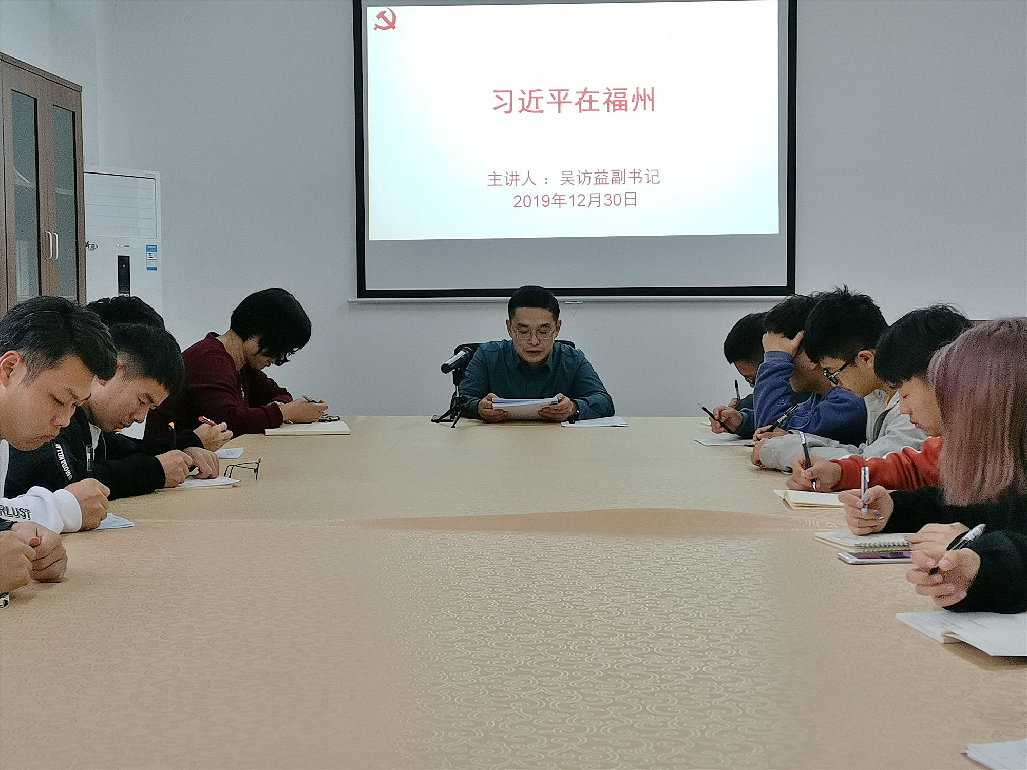 12月30日下午,校党委副书记吴访益在XK星空会议室,给校习近平新时代中国特色社会主义思想读书社学生讲授了一堂思政课。XK星空部分老师和读书社成员参加学习。