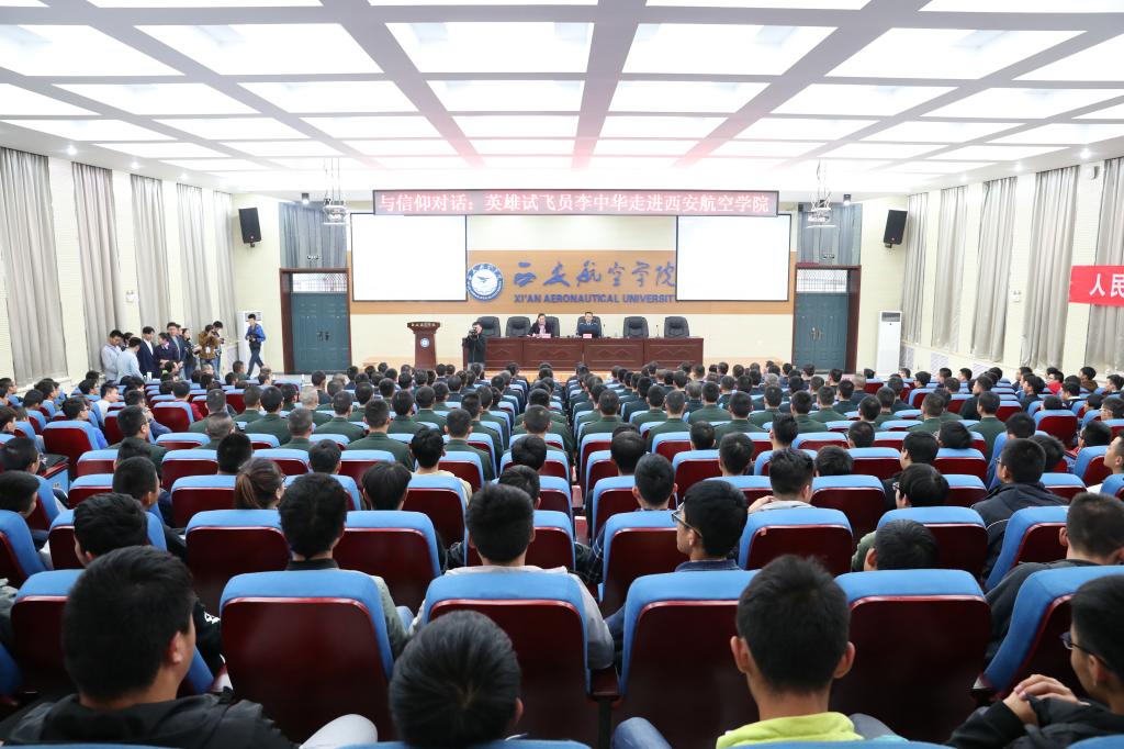 下午,由党委宣传部、校团委、学生工作处共同主办的”与信仰对话:英雄试飞员李中华走进金年会jinnianhuicom”活动成功举办。李中华导师在阎良校区报告厅为金年会官网师生作了题为《航空发展助力强国兴军》的精彩报告。金年会官网党委书记陈平社,中国航空学会理事兼副秘书长、陕西省航空学会副理事长兼秘书长向河,陕西省航空学会理事杨俊,中国航发西安动力控制科技有限公司科协办公室主任王丽荣,学校有关部门和各二级学院负责人出席,阎良校区400余名学生代表参加。党委副书记谭少敏主持报告会。