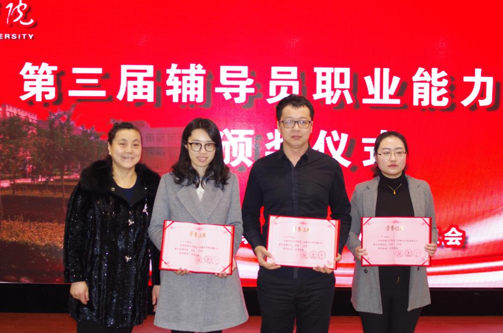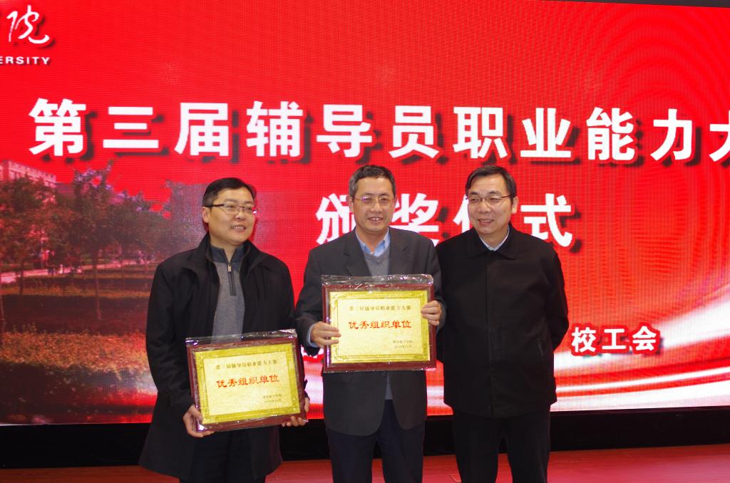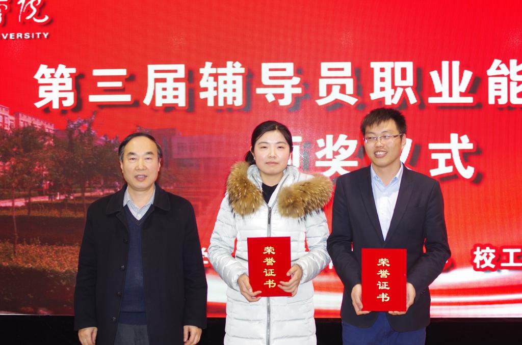金年会官网第三届辅导员职业能力大赛决赛于2016年12月30日下午在沣惠校区报告厅成功举行。本届大赛由学生工作部、教师发展中心和校工会联合举办。经前期初赛和复赛入围决赛的10名辅导员进行了激烈角逐,最终飞行器学院辅导员王嘉雨、电子工程学院辅导员杜阳宇获得一等奖,经济管理学院辅导员黄理漓等3名辅导员获得二等奖,材料工程学院来东等5名辅导员获得三等奖。